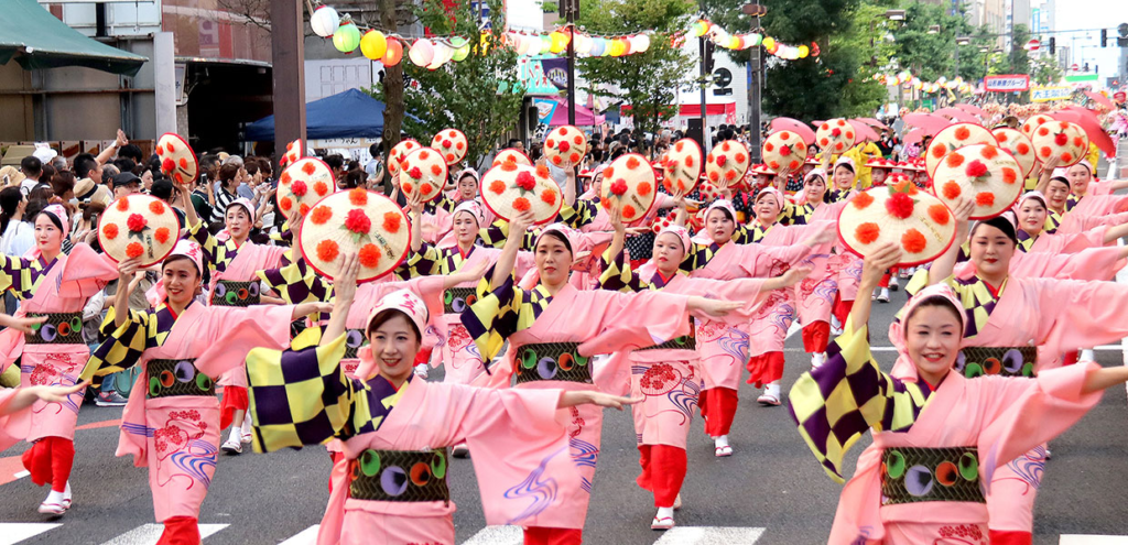 3.約1万~1万4千人の踊り手が参加し、山形市中心部を練り歩きます。